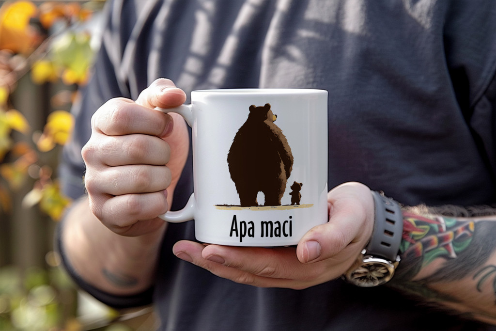 Aranyos „Apa maci” feliratú bögre medve mintával, amely tökéletes ajándék apukáknak születésnapra, névnapra, apák napjára vagy bármilyen különleges alkalomra.